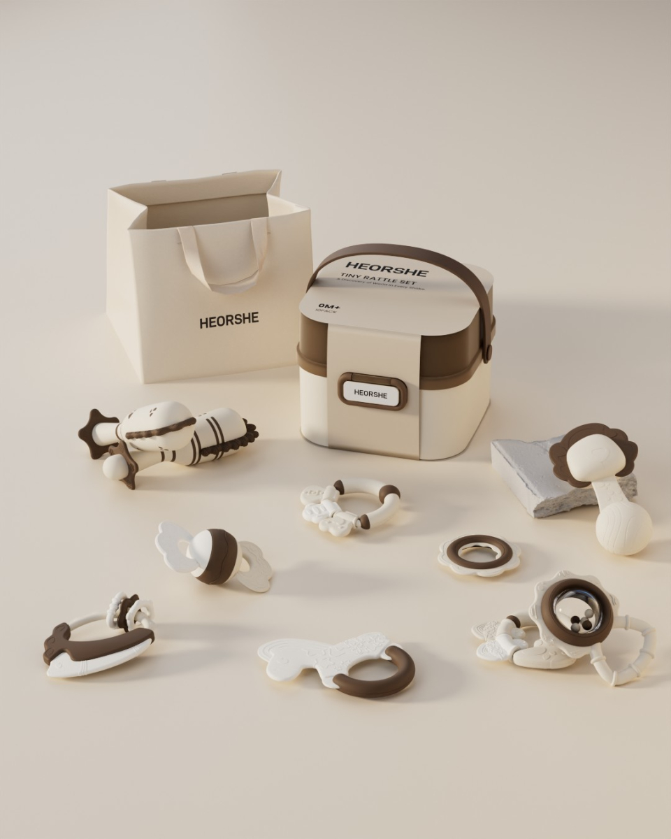 Набор игрушек, погремушек и грызунков HEORSHE в контейнере Tiny Rattle Set, Цвет: бежевый бежевый 161000