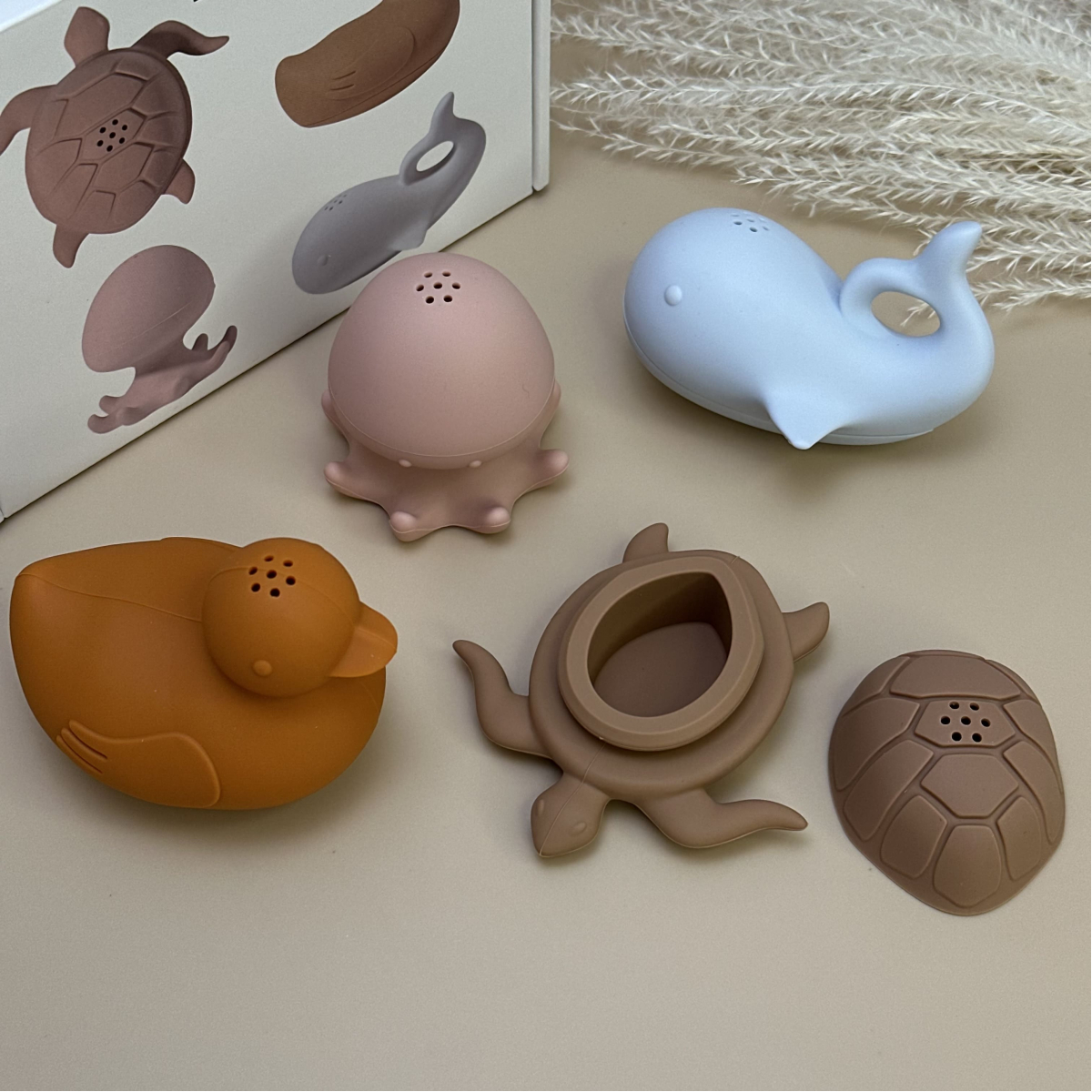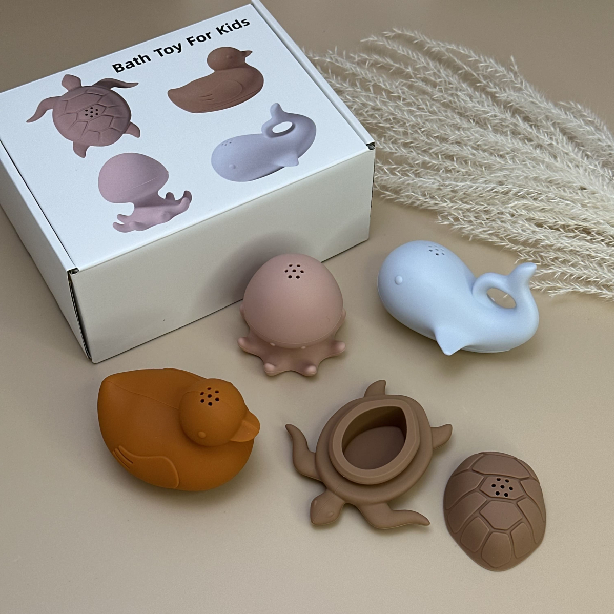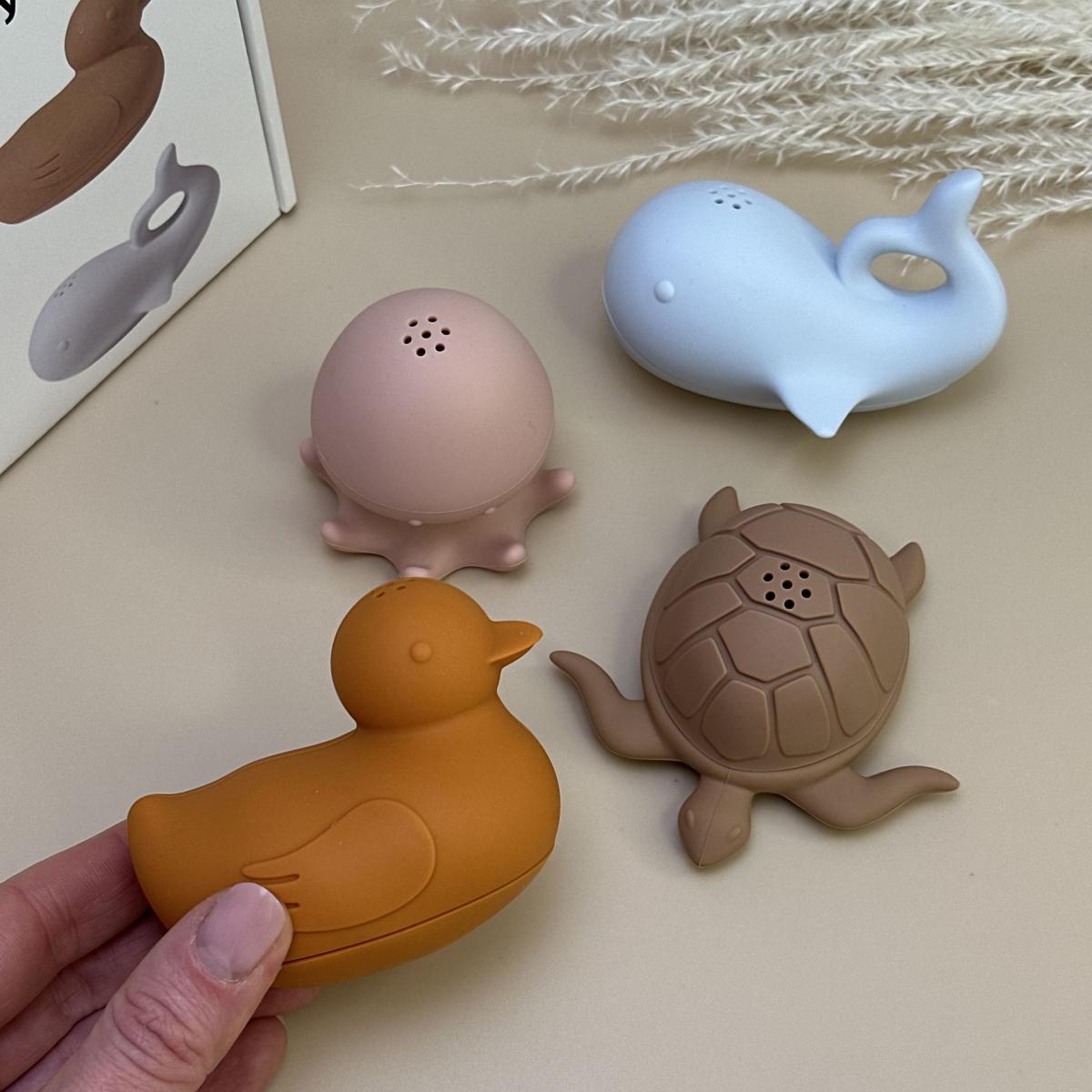 Набор игрушек для купания силиконовый с уточкой, в коробке, 4 шт.