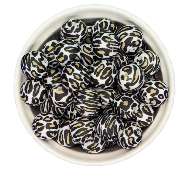 Сфера пятнистая бусина силиконовая, 15 мм