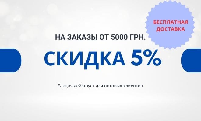 ОПТ. -5% и бесплатная доставка на заказы от 5.000 грн.